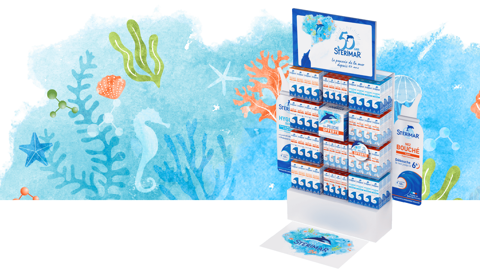 Comment célébrer les 50 ans d’une marque emblématique tout en renforçant sa proximité et sa visibilité ? À l’occasion de cet anniversaire majeur, Stérimar nous a confié la création de son territoire graphique commémoratif, destiné à faire rayonner sa légitimité en pharmacies comme sur tous les supports de communication.