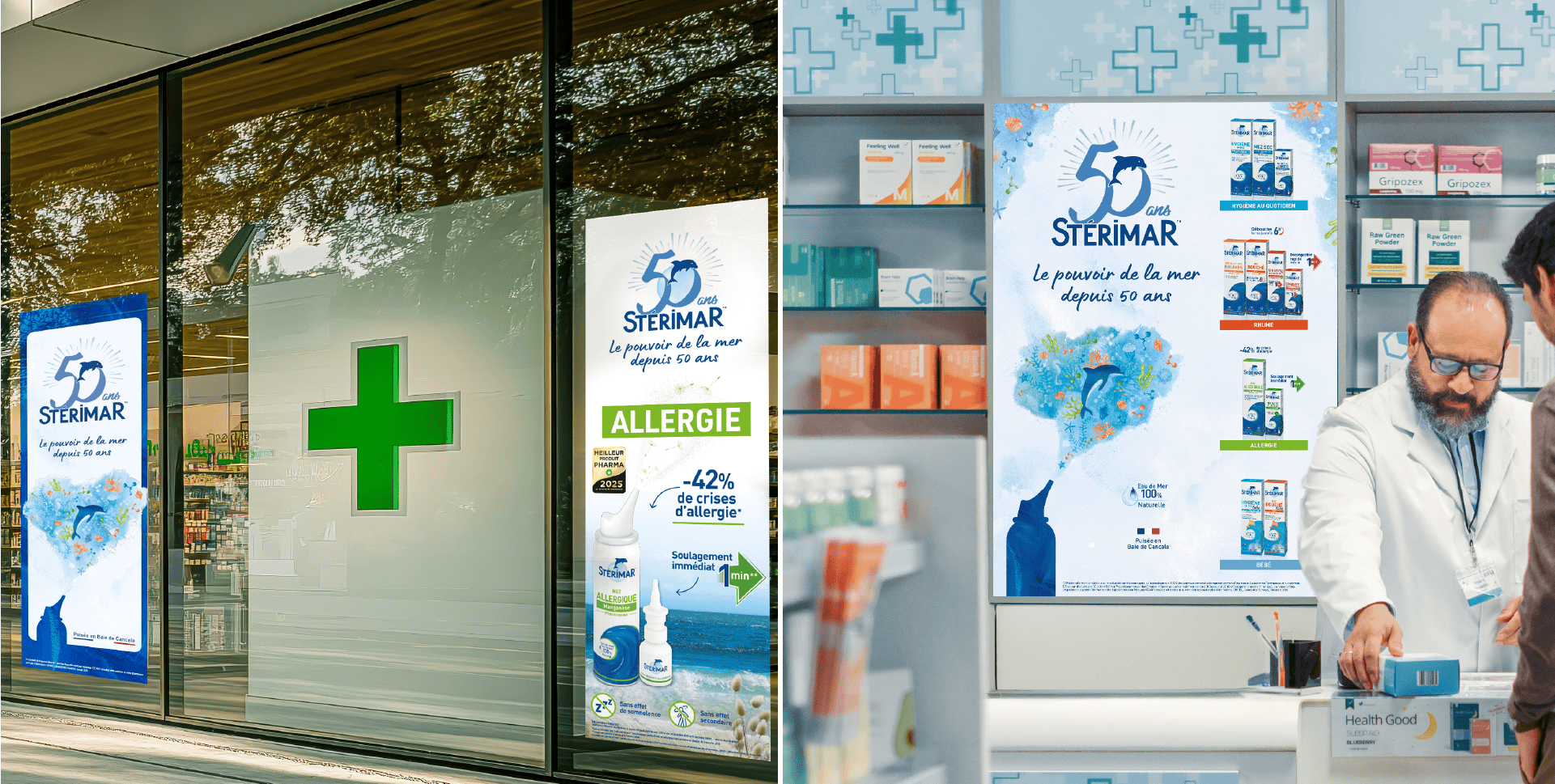 Une campagne anniversaire qui rayonne en pharmacie et au-delà : Stérimar renforce son image de marque tout en célébrant 50 ans de confiance auprès des familles. Une opération visible, cohérente et respirante, conçue pour durer et s’ancrer dans la mémoire collective.