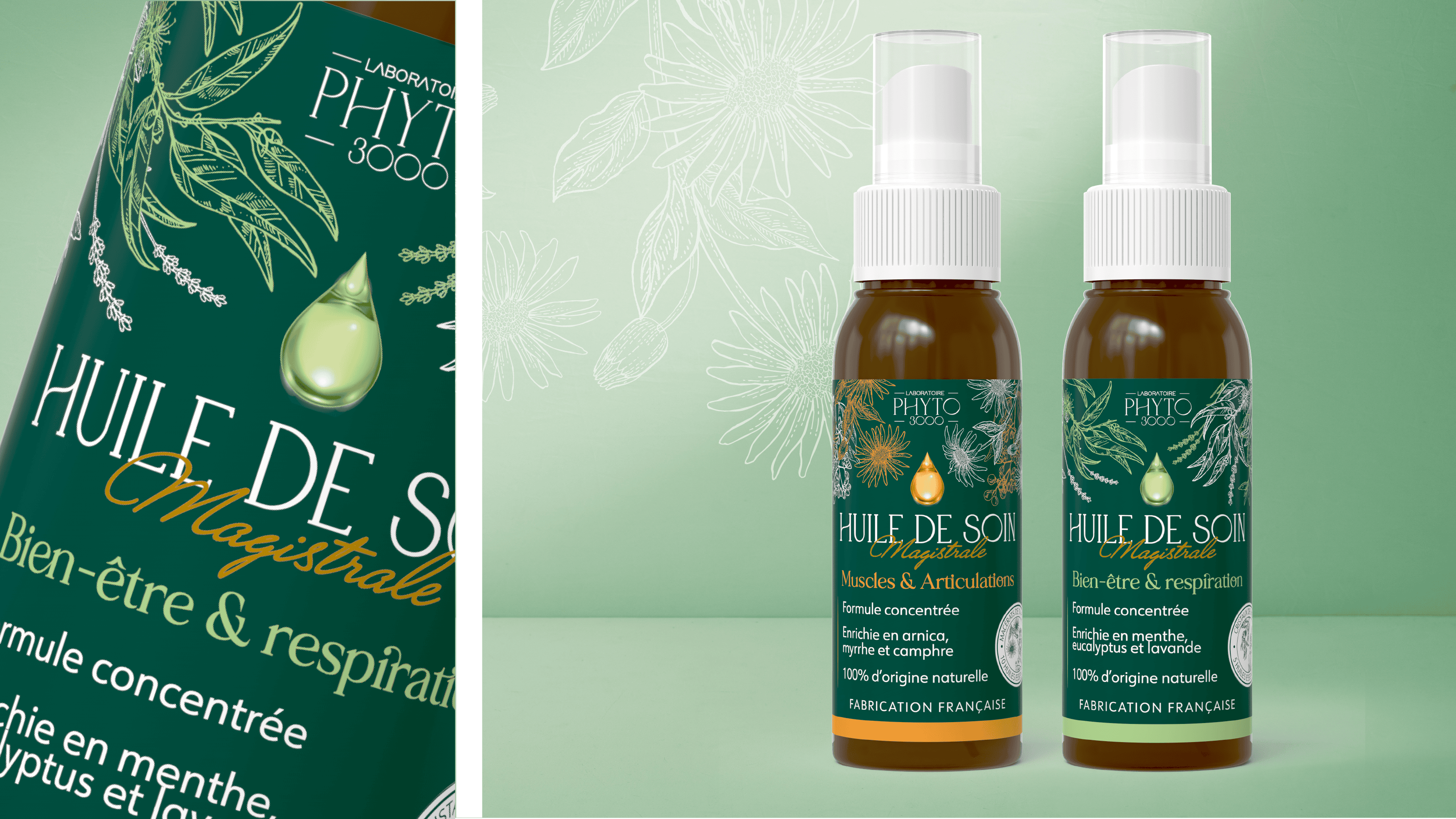Comment moderniser l’identité visuelle d’un produit culte sans perdre l’adhésion d’une clientèle fidèle, tout en valorisant des produits complémentaires sous-exploités ? Phyto 3000 nous a confié la mission stratégique de repenser le packaging de sa gamme à base de plantes, en revalorisant son produit star et en clarifiant la segmentation de ses huiles.